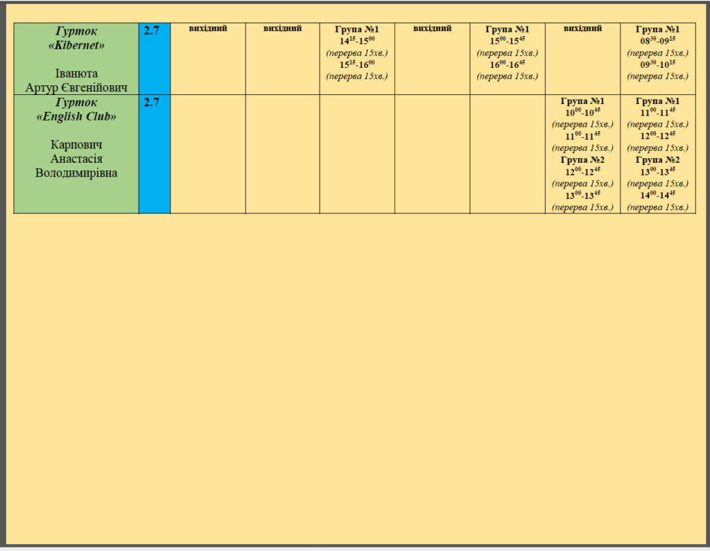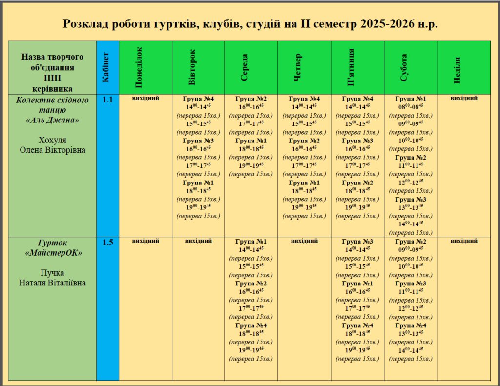 РОЗКЛАД ЗАНЯТЬ НА ІІ СЕМЕСТР 2025/2026 н.р.